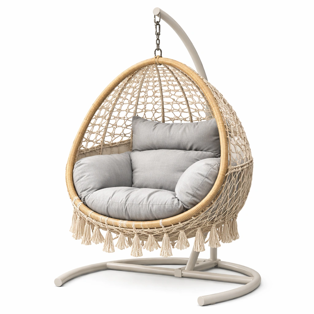 Hängesessel Rattan mit Stahlgestell Beige