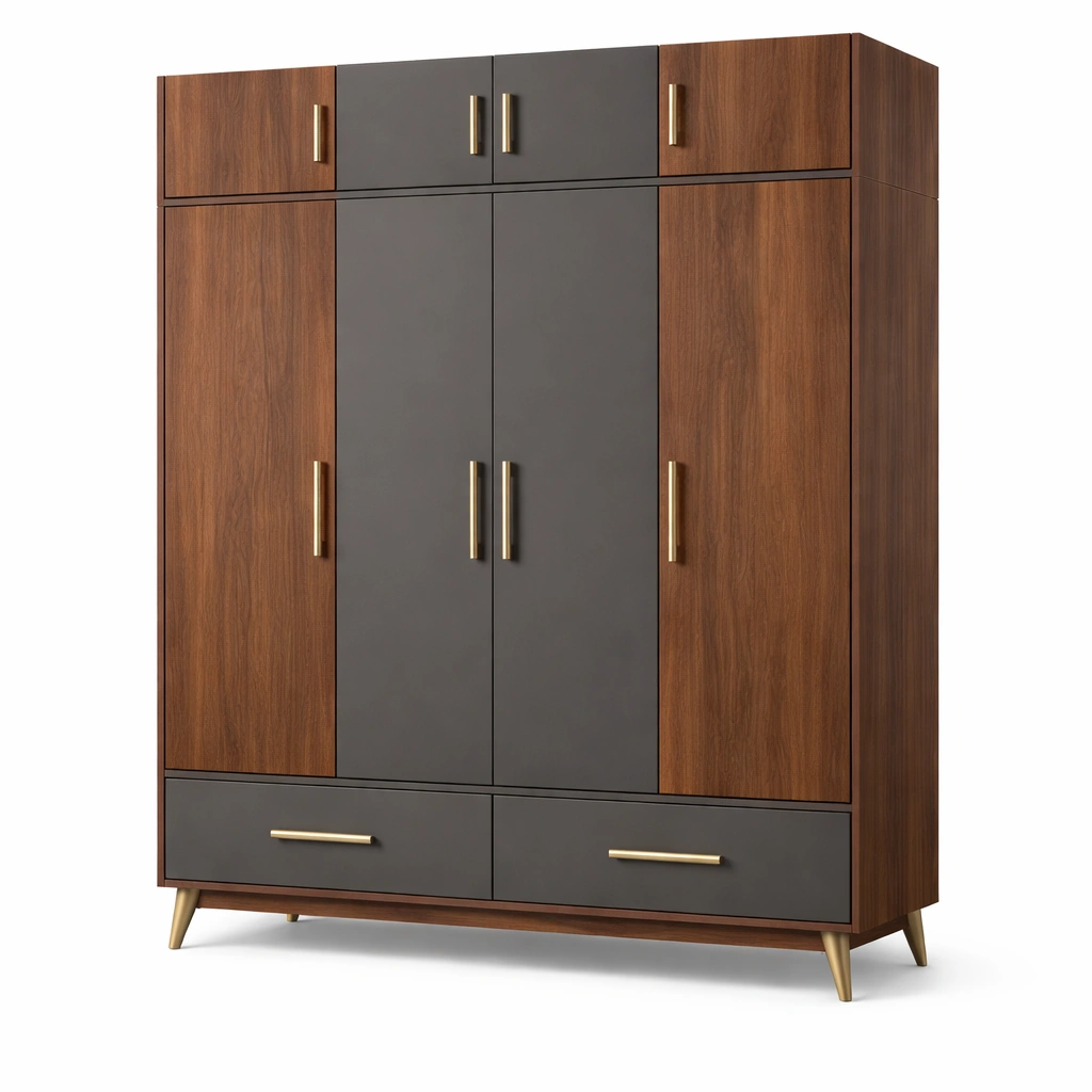 Kleiderschrank Holz Dunkelbraun Grau mit Schubladen
