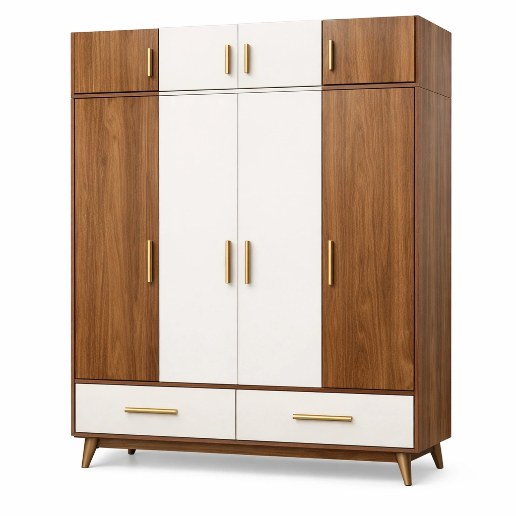 Kleiderschrank Holz Weiß Nussbaum mit 3 Türen und 2 Schubladen