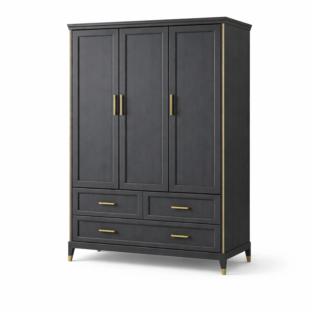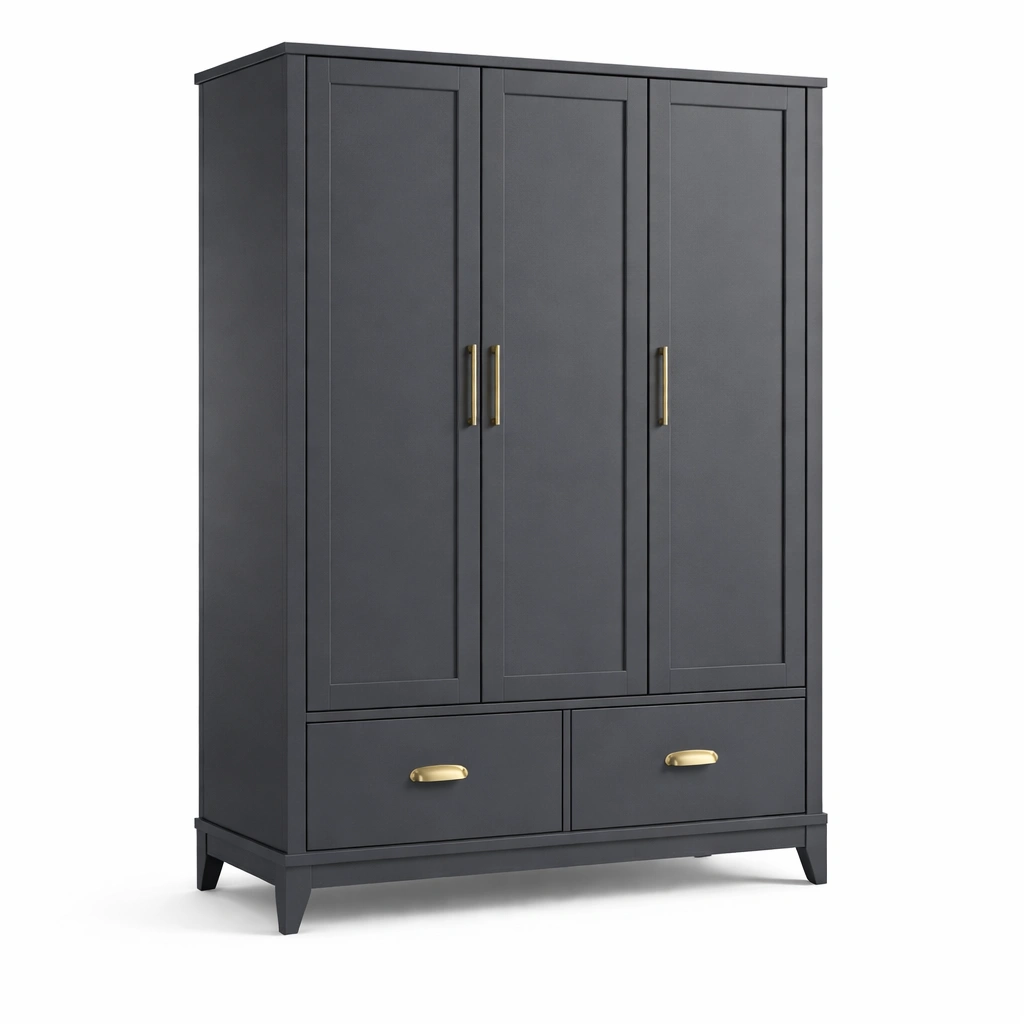 Kleiderschrank MDF Dunkelgrau mit 3 Türen und 2 Schubladen